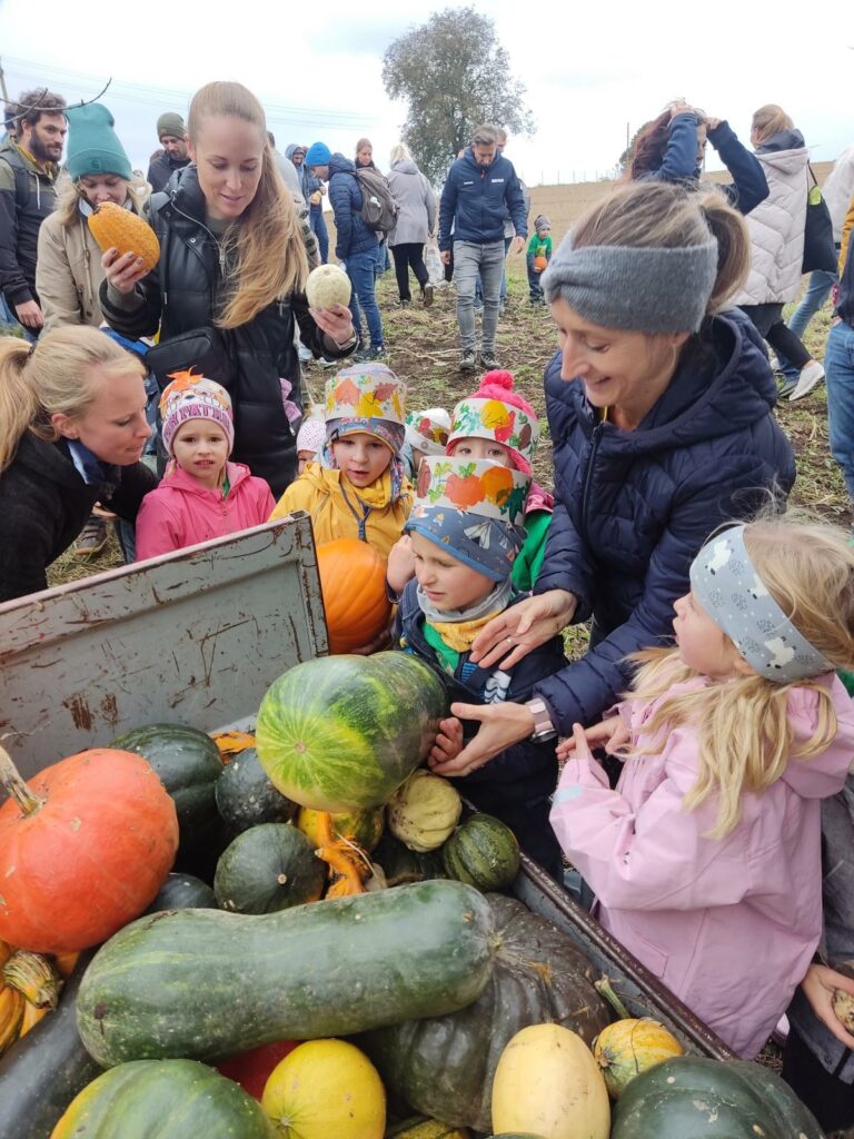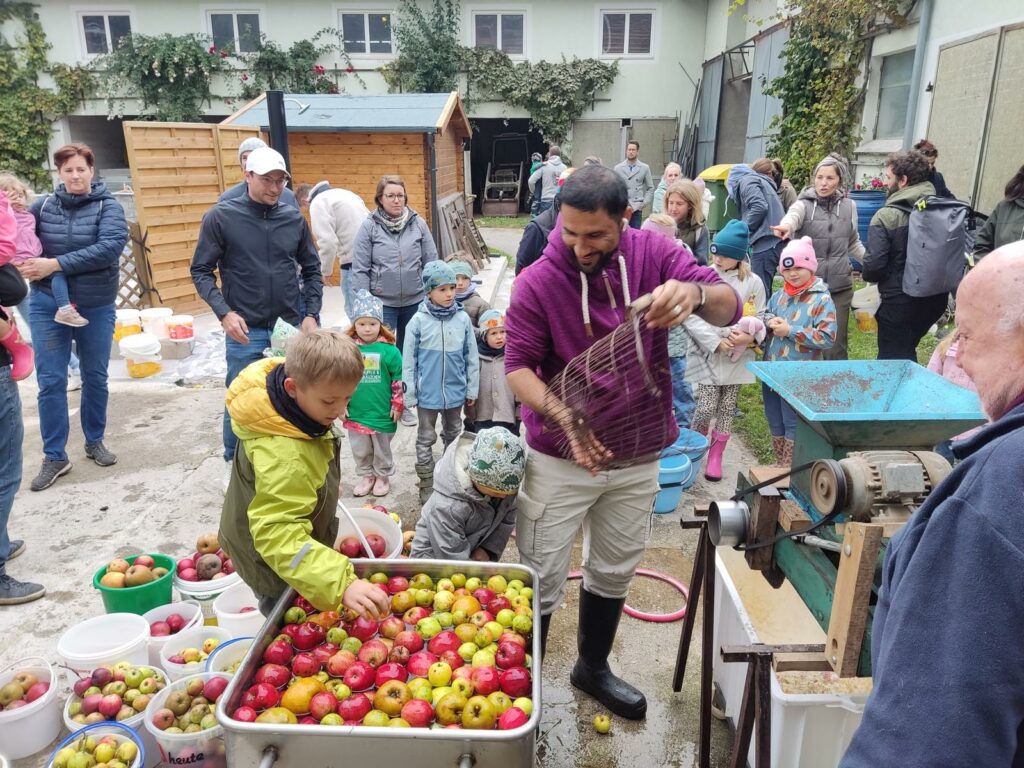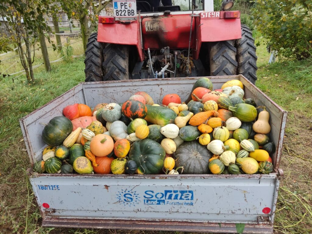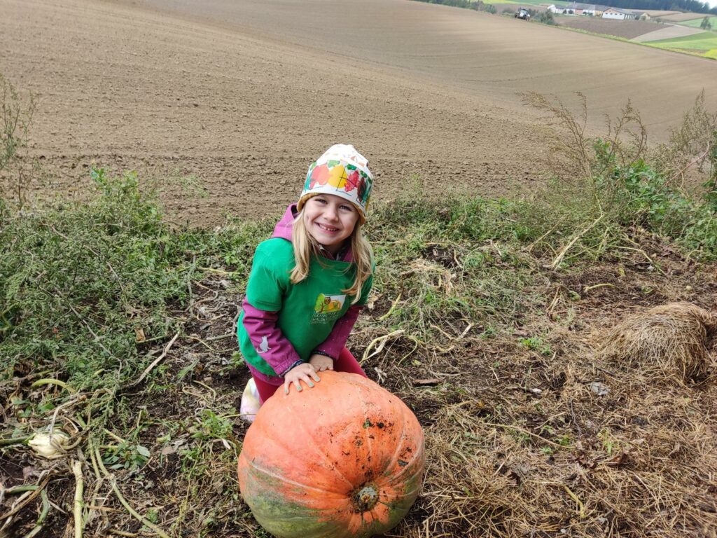 Gemeinsam mit den Eltern durften die Kinder Kürbisse ernten, Äpfel klauben und zuschauen, wie Apfelsaft gepresst wird. Auch kulinarisch kamen alle bei Kürbissuppe, Kaffee & Kuchen, Kürbisaufstrich, Waffeln, Apfelkeksen usw.,... auf ihre Kosten!